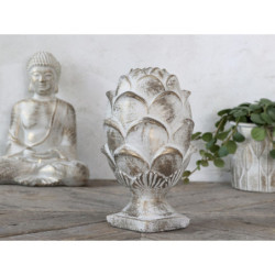 Krémová antik cementová dekorace šiška na podstavci Pine - 20 cm