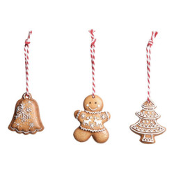 Set 3ks závěsná dekorace perníček, zvonek a stromek Ginger - 5*0,5*6 cm
