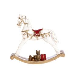 Krémová dekorace vintage houpací koník s medvídkem - 14*3*13 cm