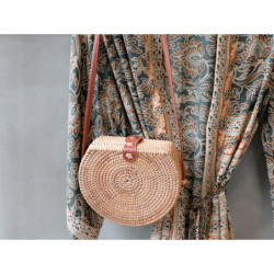 Kulatá ratanová kabelka přes rameno Bali - 20*7*17 cm