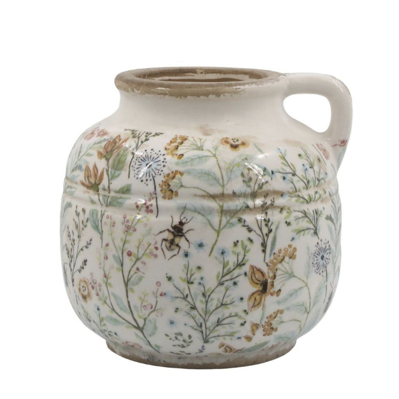 Béžový keramický džbán/ váza s lučními květy Maxime - 17*16 cm