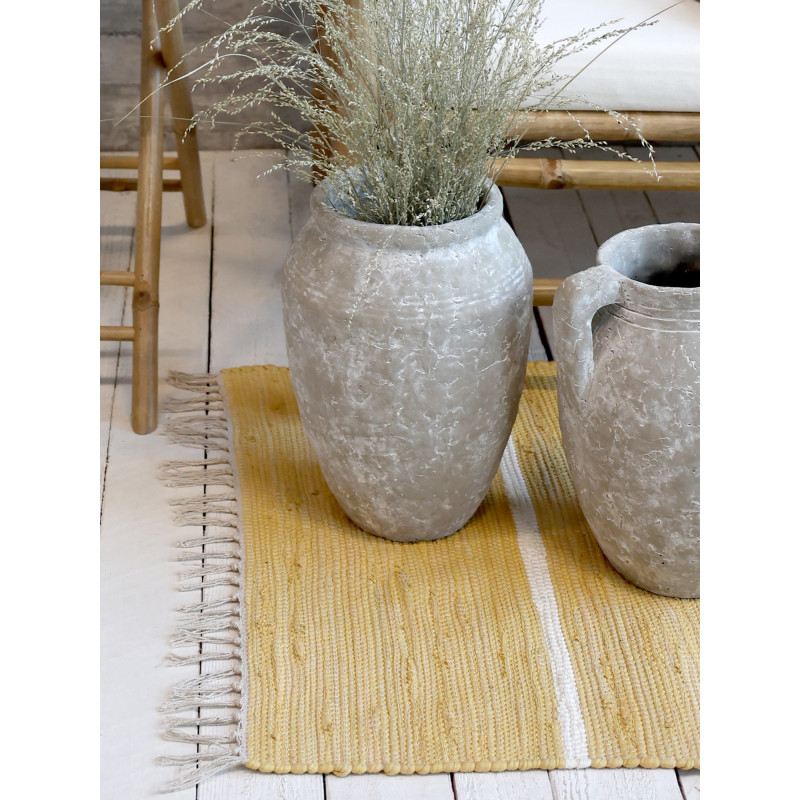 • Žlutý bavlněný koberec s pruhy a třásněmi Rag honey - 70*160 cm