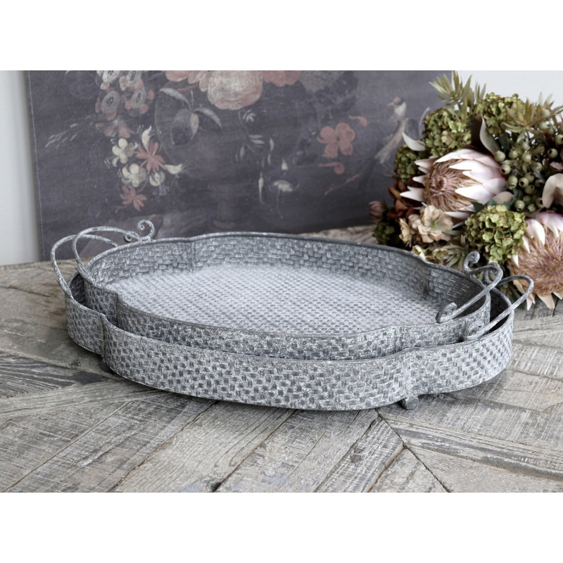 Set 2ks dekorační plechové podnosy s patinou Trao - 53*35*11/ 46*31*10cm