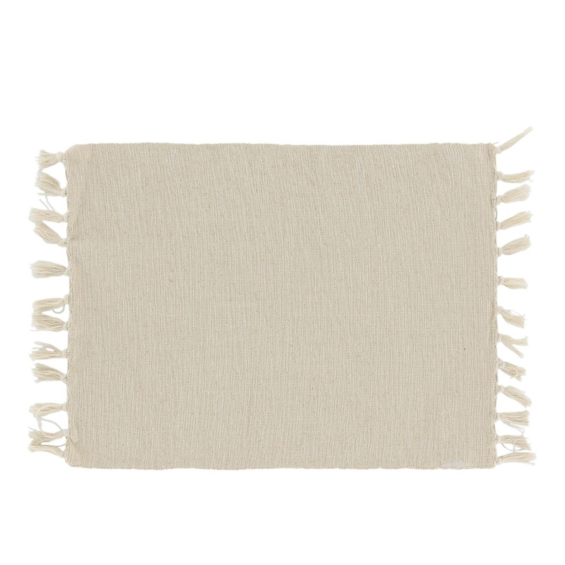 Krémové bavlněné prostírání se střapci Éternel - 34*45 cm