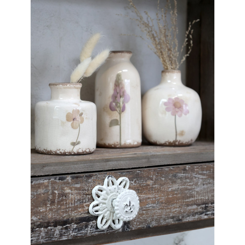 Krémová antik litinová úchytka ve tvaru květu - 8 cm