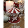 Červeno-bílá vánoční dekorace kolotoč s koníky Vintage Carousel - Ø 14*17 cm