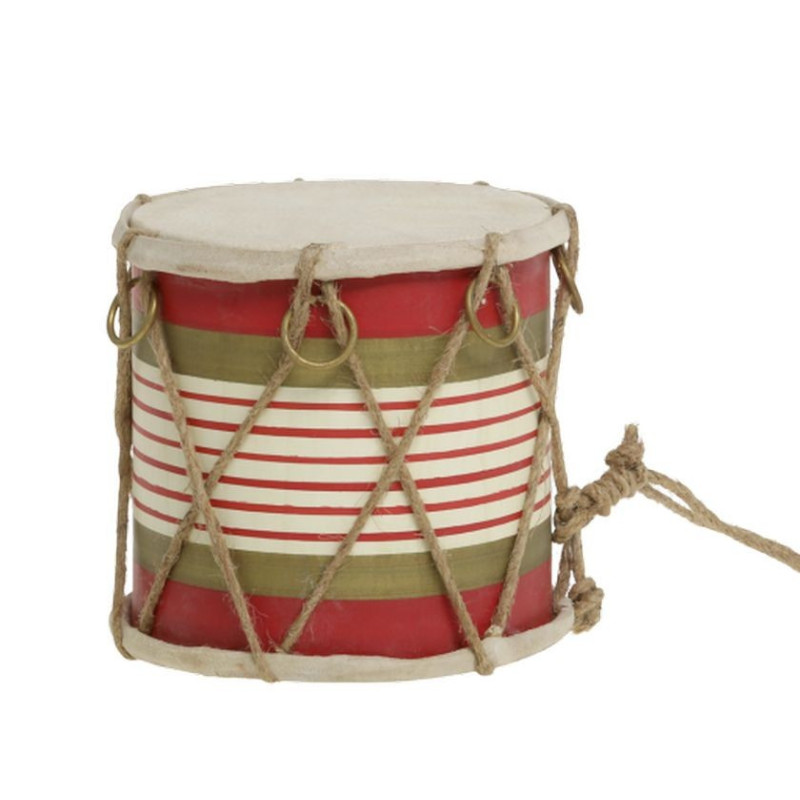 • Červeno-bílý vánoční dřevěný buben s kůží Drum Vintage - Ø 11*10 cm