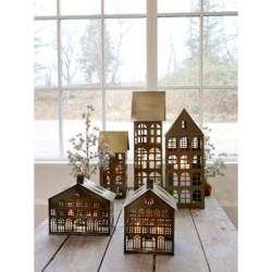 3ks mosazný antik kovový domek na svíčku Candle Houses - 12*12*27cm
