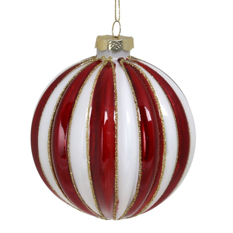 Červenobílá skleněná vánoční ozdoba koule s pruhy Chic - Ø 10 cm