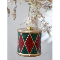 Červeno-zelená vánoční ozdoba vintage buben - Ø 6*6 cm