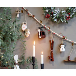 Červená kovová vánoční ozdoba vintage lyžařský vlek - Ø 3,5*8,5cm