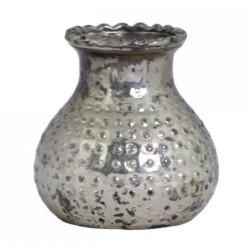 Stříbrná antik skleněná dekorační vázička Marcia - Ø 9*8cm