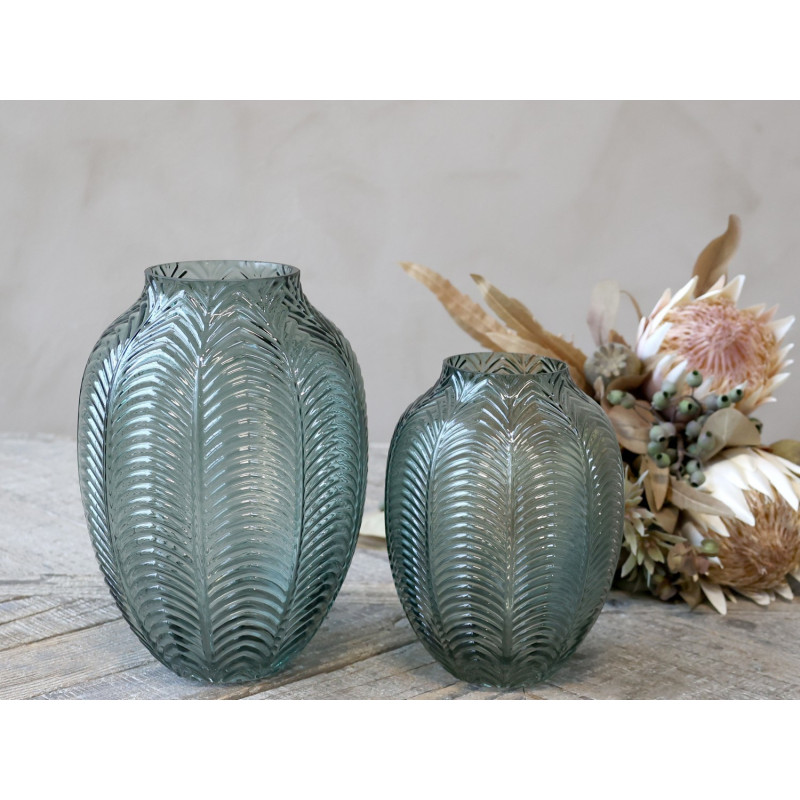 Transparentní skleněná dekorační váza Leaf - Ø 18*25cm