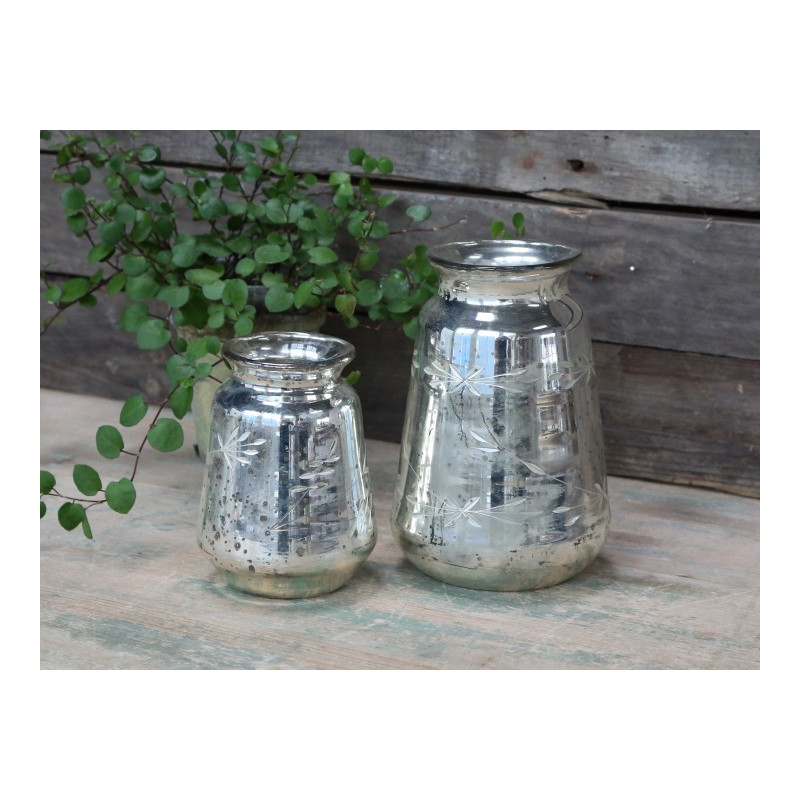 Stříbrná antik skleněná dekorační váza Silb - Ø 14*20cm